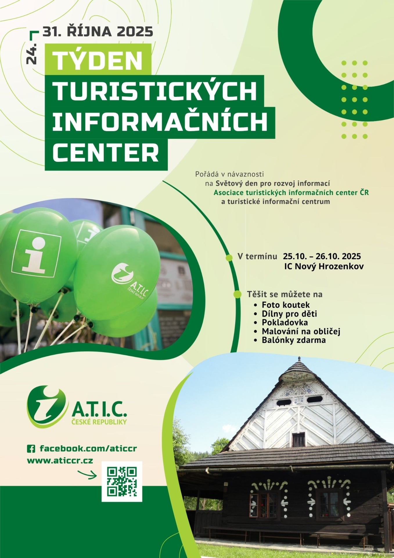 Informační centrum Nový Hrozenkov je nově členem Asociace turistických informačních center (A. T. I. C.) a poprvé se účastní Týdne turistických informačních center. V sobotu 25. 10. a v neděli 26. 10. 2025 se tak můžete těšit na různé aktivity nejen pro děti.