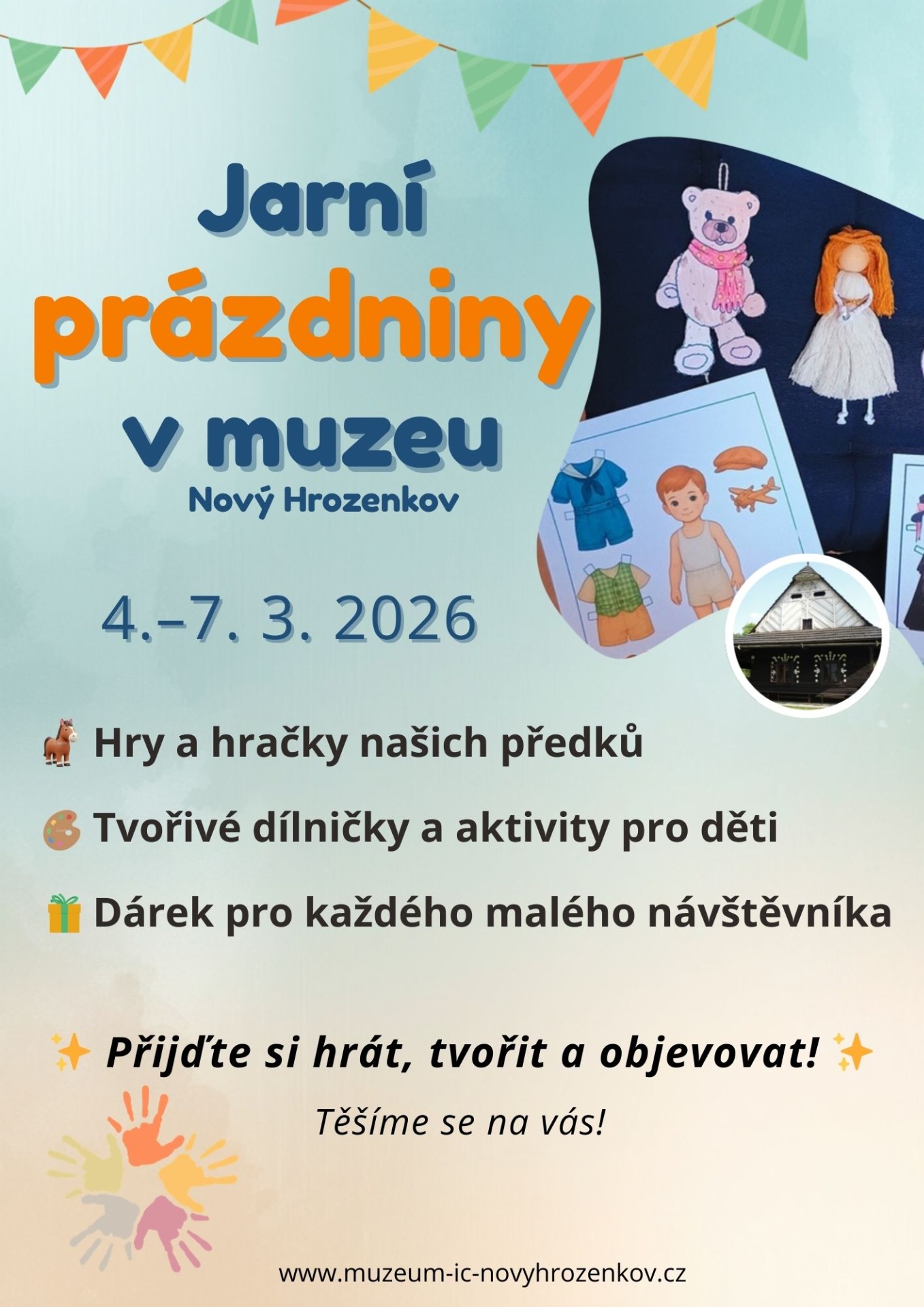 Nevíte, kam s dětmi o jarních prázdninách? Přijďte do muzea v Novém Hrozenkově! Čekají vás hry, tvoření i objevování světa hraček našich předků.